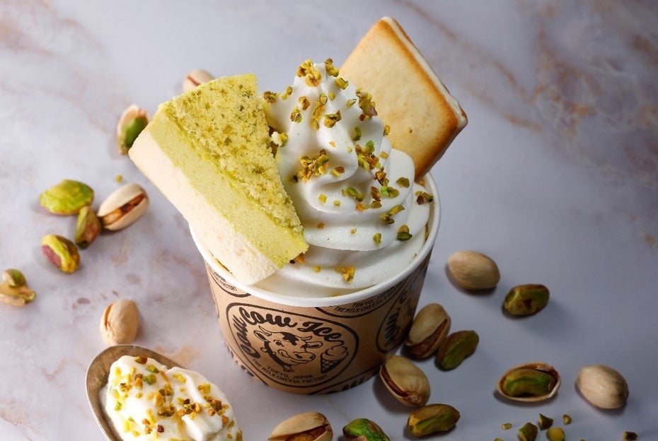 北海道産のジャージーミルクを使用したクリーミーなミルクアイスと、北海道産のゴーダチーズを使った濃厚なチーズアイスを組み合わせたMIXアイスクリームに、ミルクチーズケーキピスタチオとクッキーをトッピングしたスペシャルなサンデーが登場します。