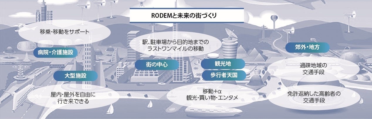 RODEMは、観光案内、多言語翻訳、経路案内などのアプリケーションを搭載し、駅や駐車場から目的地までのラストワンマイルの移動、過疎地域の交通手段、観光地での移動+αなどに活用されることを目指している。