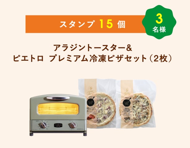 プレゼントには、ポイントやピエトログッズ、冷凍ピザセットなどがあります。