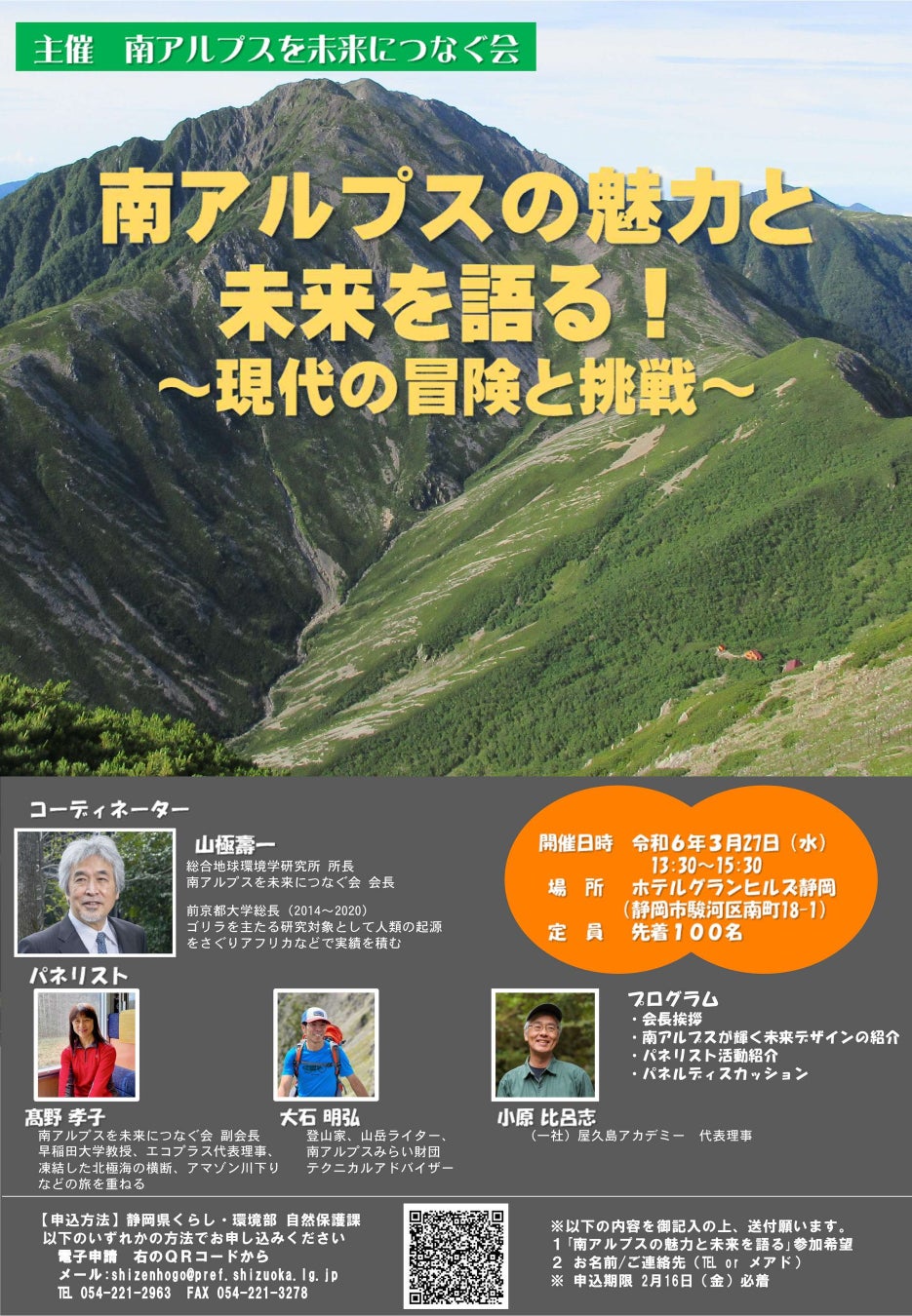 「南アルプスを未来につなぐ会」は、南アルプスの魅力と未来について語るシンポジウムを開催します。