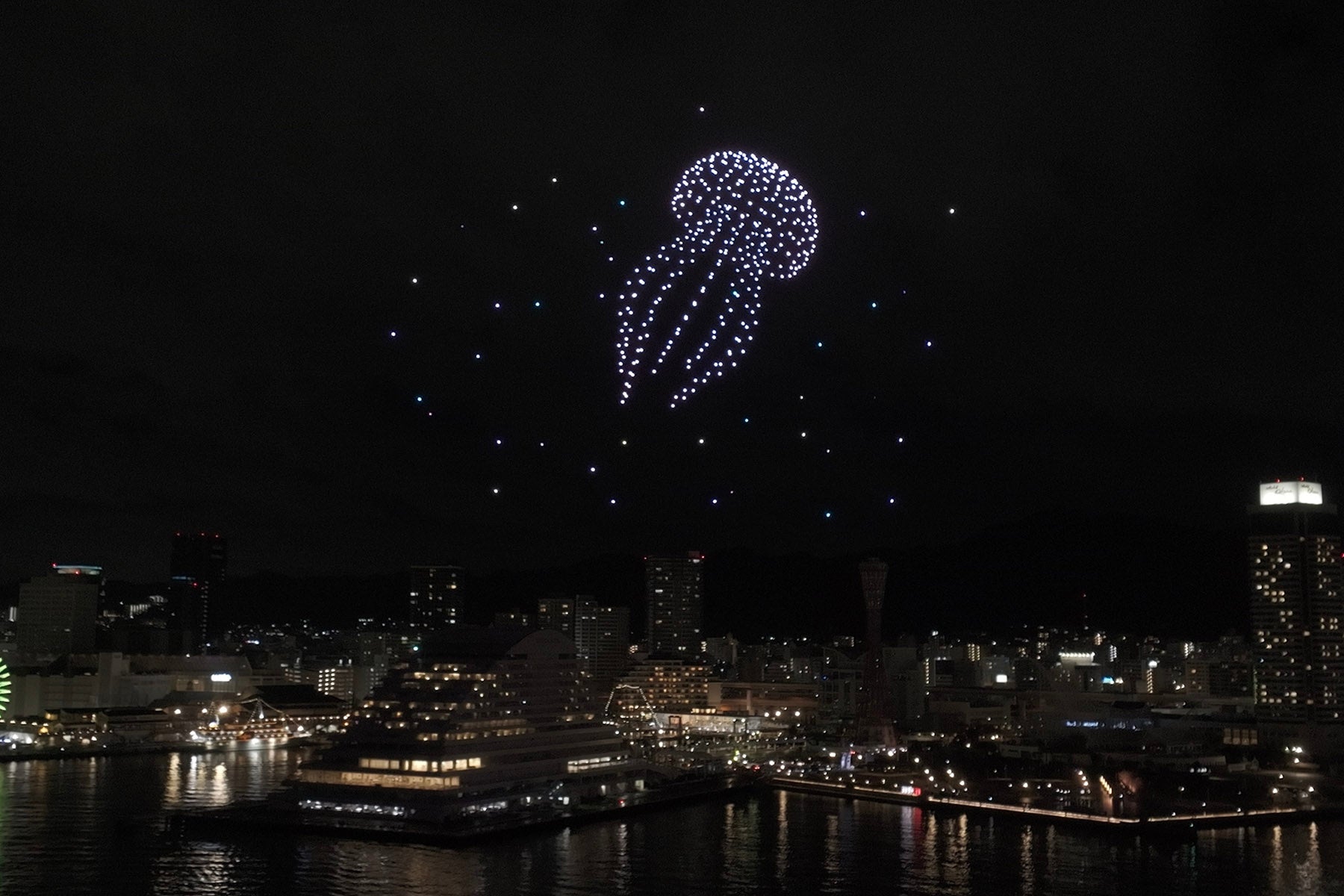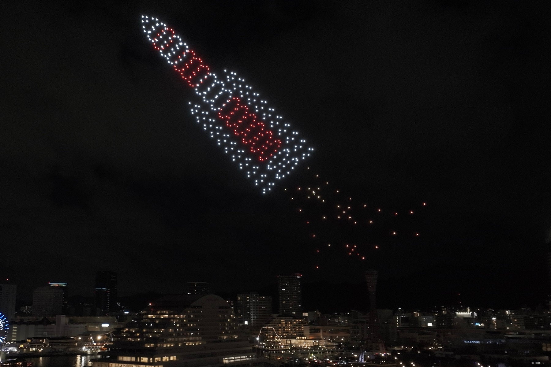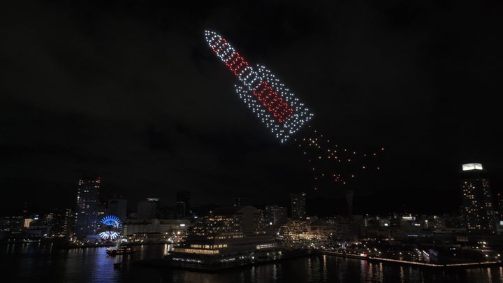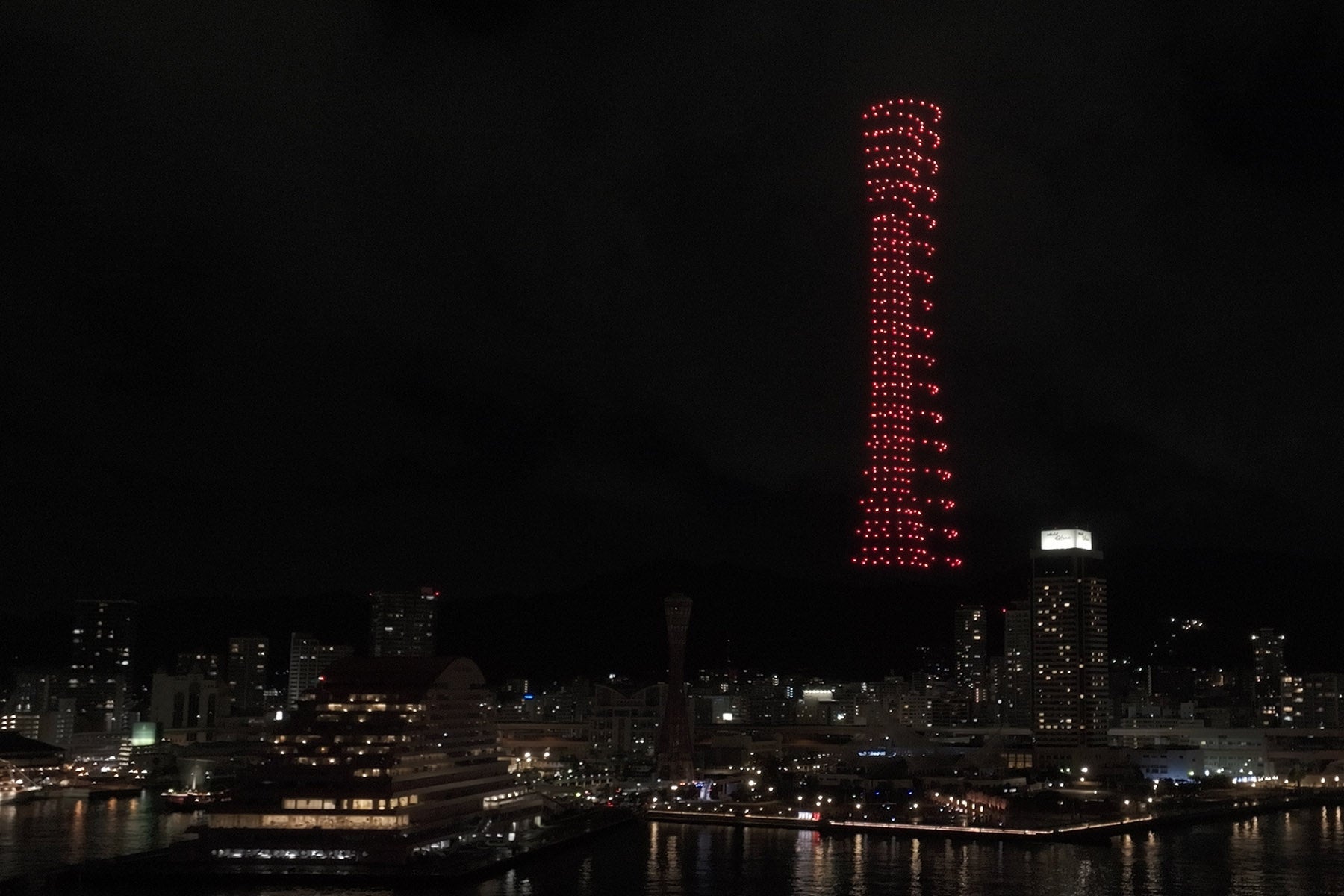 - ドローンショーでは神戸のランドマークやクルーズ船のイメージが描かれた