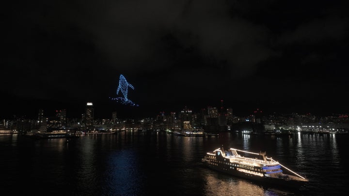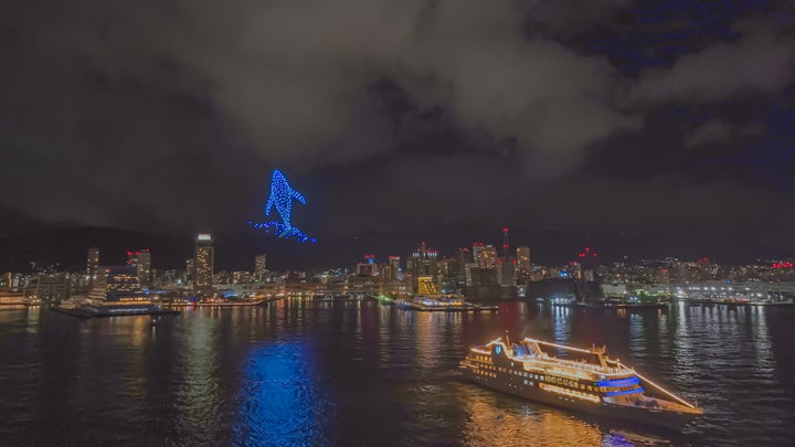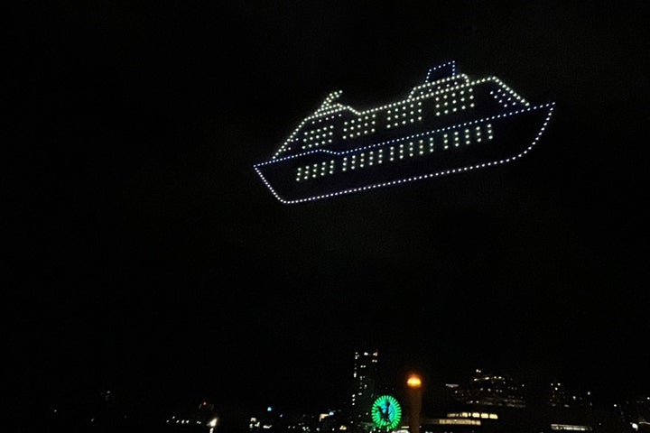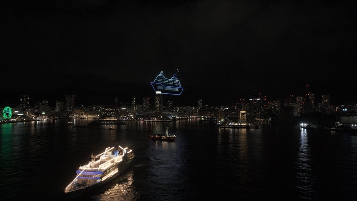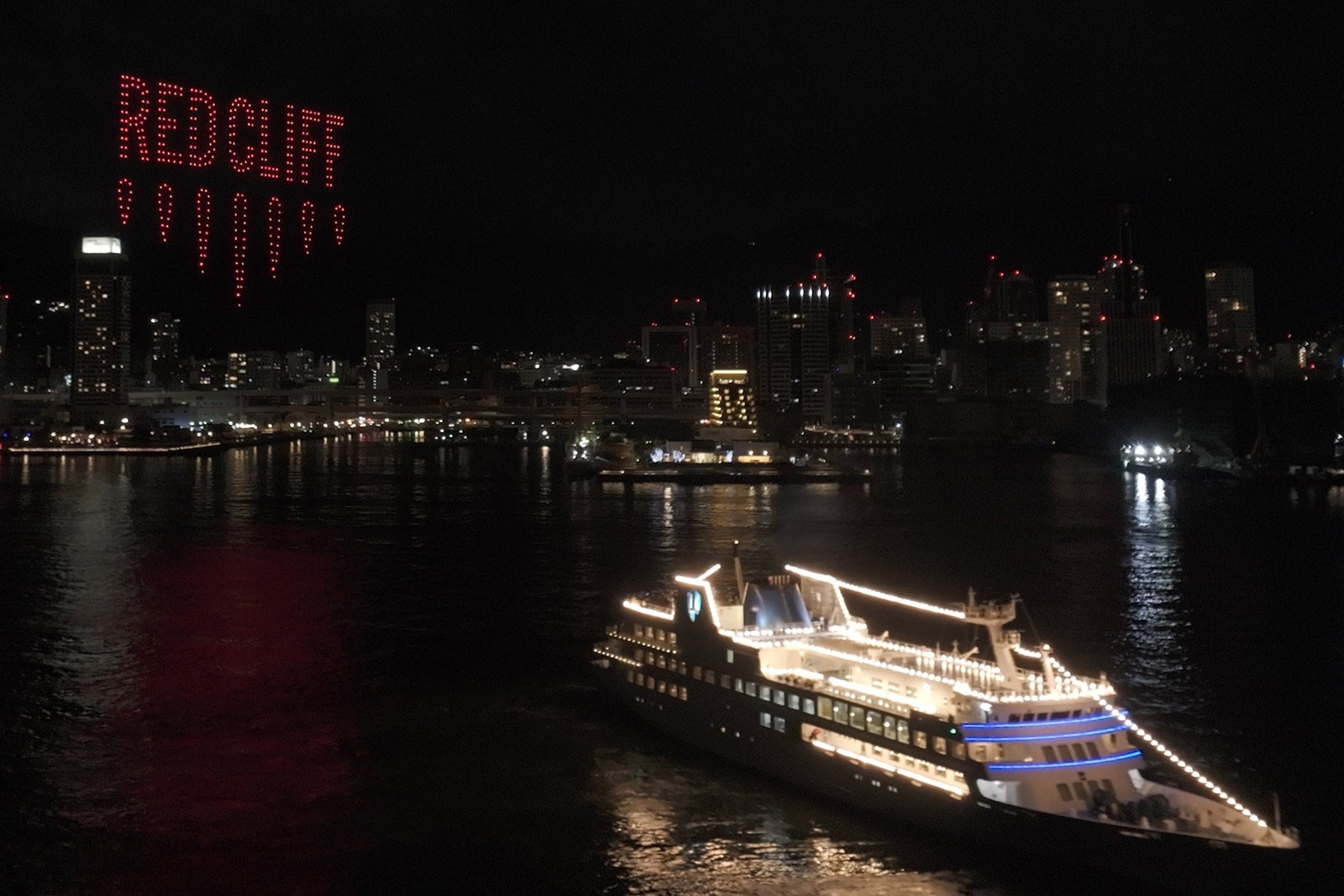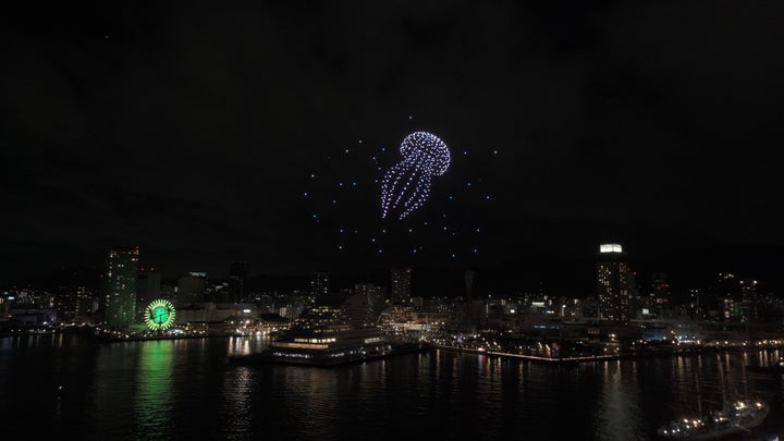 - ドローンショーでは神戸のランドマークやクルーズ船のイメージが描かれた