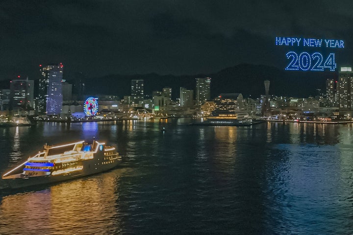 神戸港で開催された神戸クルーザーの年越しイベントでは、新年のスペシャルドローンショーが行われ、クルーズ船の乗客たちは驚きと感動の新年を迎えることができました。