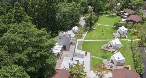 - 受賞した「グランヴォー スパ ヴィレッジ」は自然と調和したリゾートで、千葉県長柄町の自然環境を活かした空間デザイン