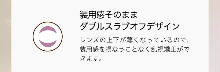 装用感を損なわず乱視矯正ができるダブルスラブオフデザインや、うるおい成分配合の保存液など、快適なつけ心地を追求しています。