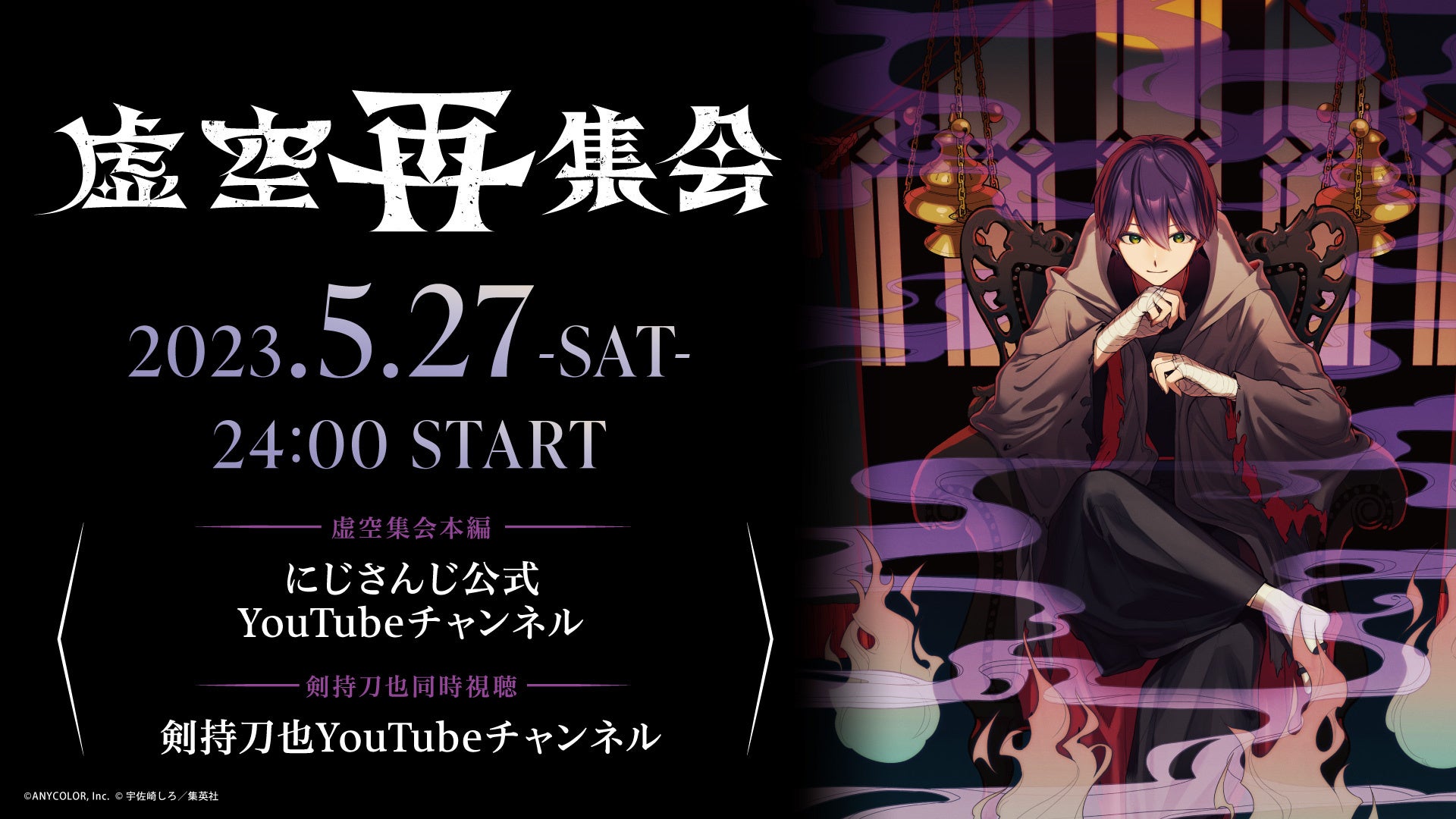 VTuberグループ「にじさんじ」所属の剣持刀也のリアルソロイベント第1弾「虚空集会」の本編ノーカット初配信&本人同時視聴コメンタリー配信「虚空再集会」が2023年5月27日(土)24:00より開催される。
