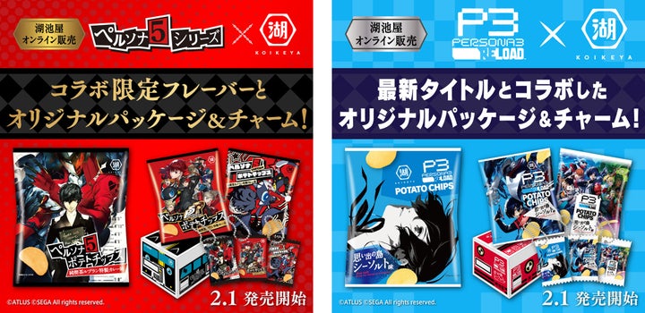 - 湖池屋から「ペルソナ5 シリーズ ポテトチップスセット」と「ペルソナ3 リロード ポテトチップスセット」が発売される