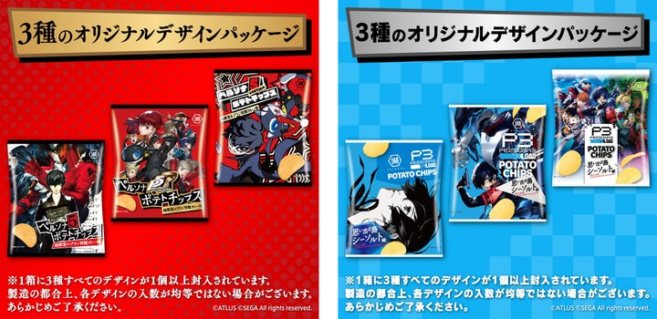 - 前者は「ペルソナ5」とのコラボでルブランカレー味、後者は「ペルソナ3」とのコラボでシーソルト味のポテトチップス