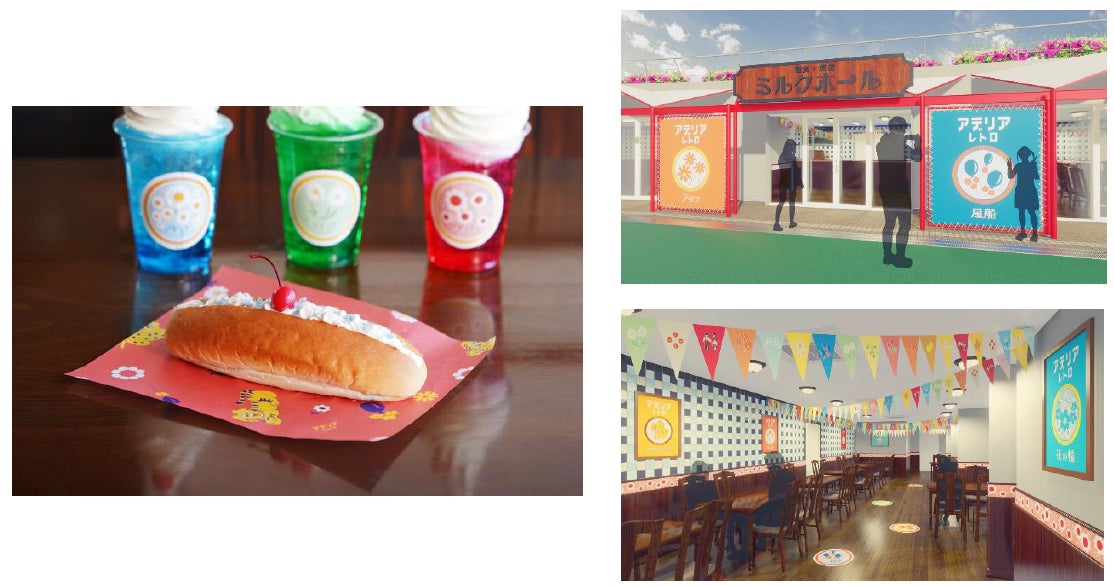 コラボレストラン「軽食・売店 ミルクホール」では、アデリアレトロの世界を体験できる空間とフードが提供されます。