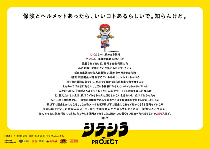 大阪府内で実施される「ジテシラProject」は、自転車の安全利用を促進するための取り組みです。