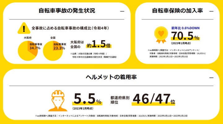 - 自転車保険加入率やヘルメット着用率の向上を目指す