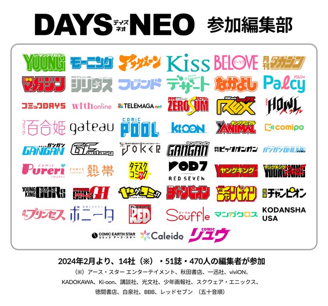 これにより、DAYS NEOは「14社・51誌・470人の編集者と出逢えるマンガ投稿サイト」となりました。