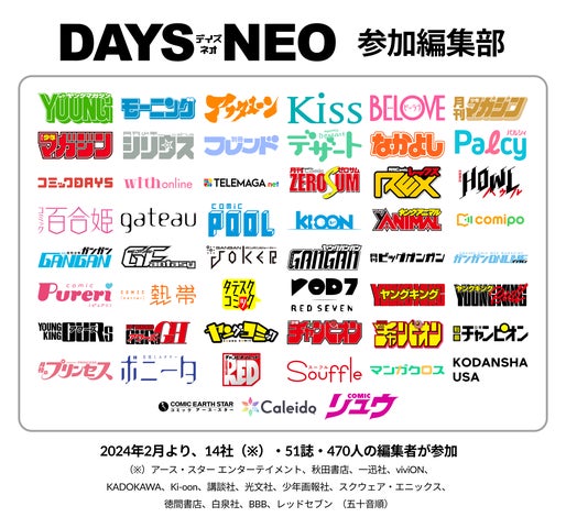 - DAYS NEOは14社51誌470人の編集者と出逢えるマンガ投稿サイトに進化