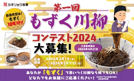 カネリョウ海藻株式会社は、「めかぶ川柳コンテスト」のスピンオフとして、「もずく川柳コンテスト」を開催します。
