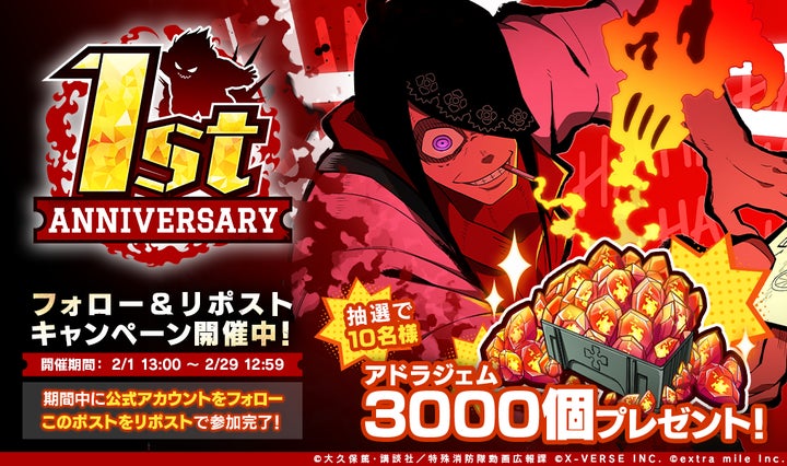 • 株式会社XVERSE PLUSとextra mile株式会社が『炎炎ノ消防隊 炎舞ノ章』の1周年記念キャンペーンを開催