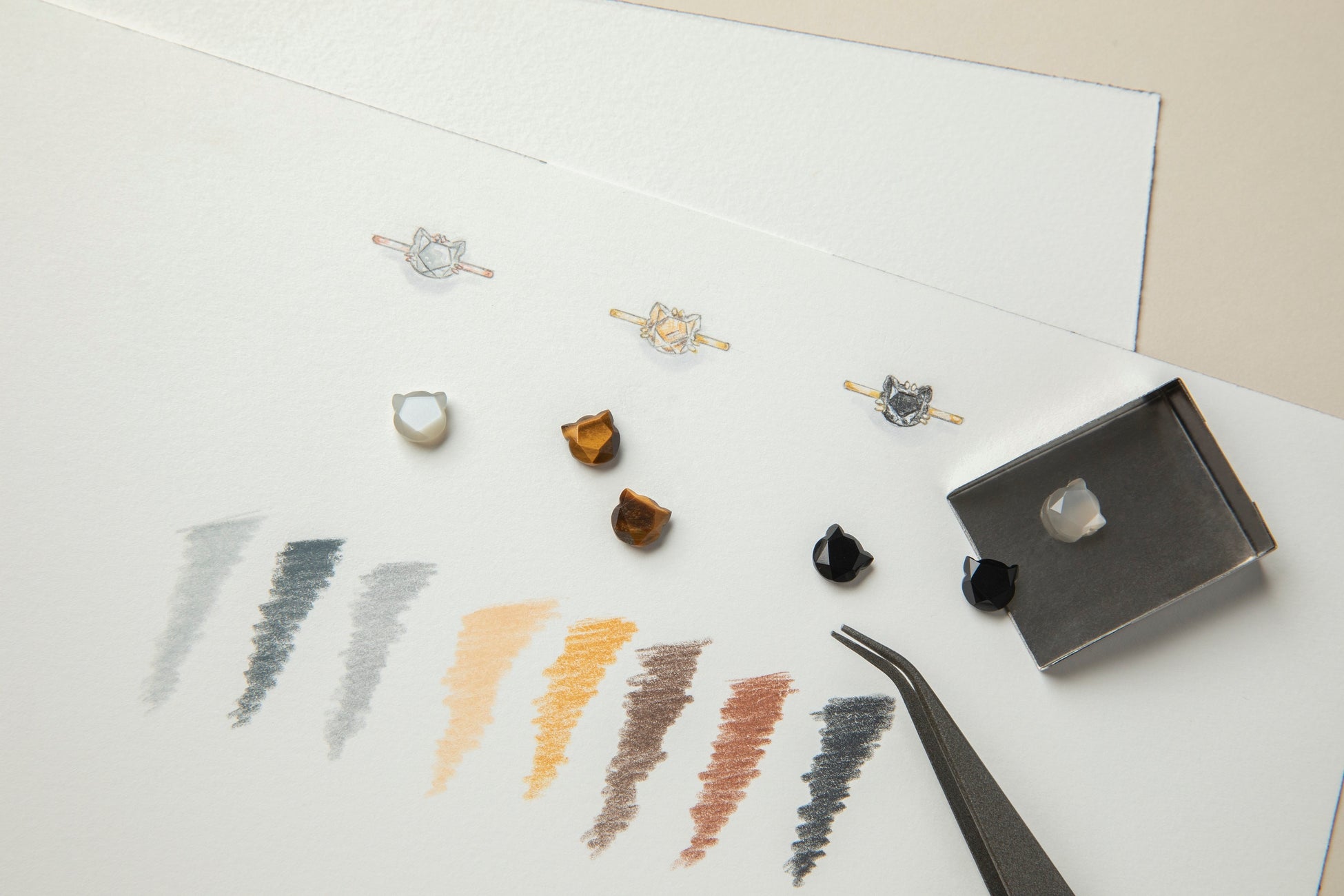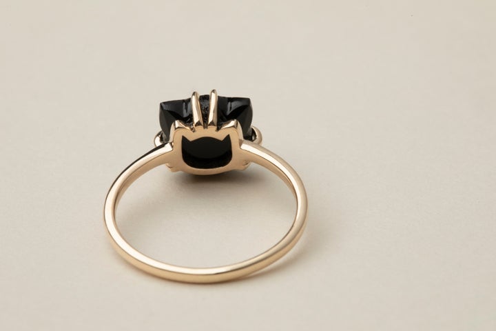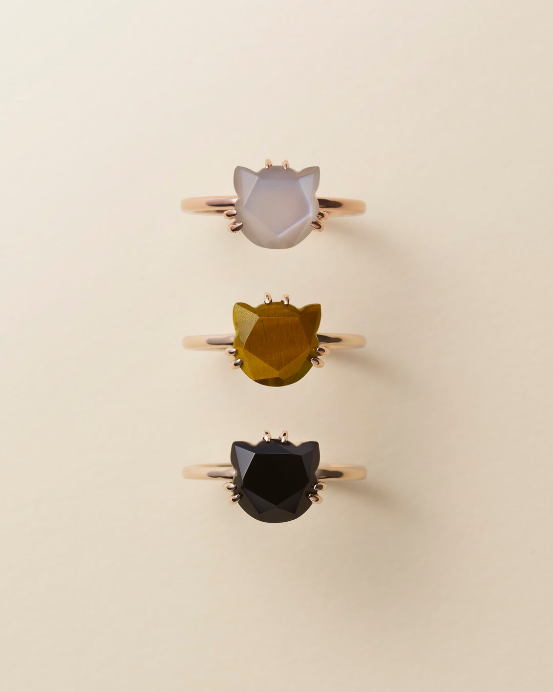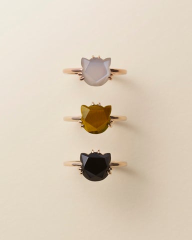 リングはねこのシルエットにカットされた天然石を使用し、ねこの顔の愛らしさを表現しています。