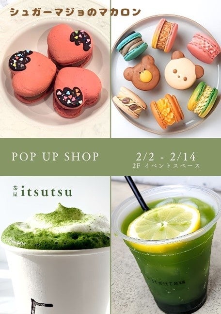 オープニングイベントでは、地元福岡の八女茶と人気のマカロンがコラボした「茶屋itsutsu」×「シュガーマジョのマカロン」や、キルギスの高級蜂蜜を使ったスイーツを提供する「Ala Too(アラトォ)」が登場します。