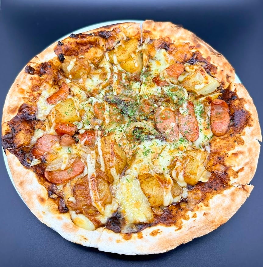 『ゴー!ゴー!ジャーマンポテトの焼きカレーピザ』は、CONAのピザにゴーゴーカレーの濃厚な黒いカレールーを使用したボリューミーなピザです。