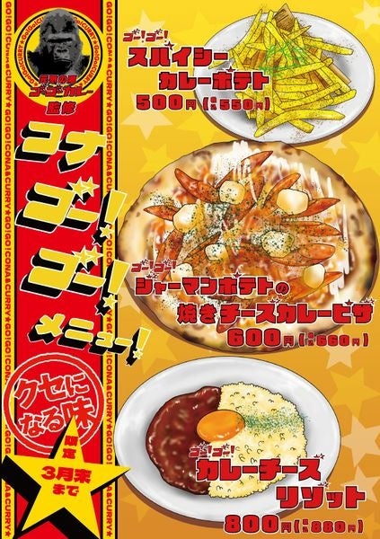 ゴー!ゴー!ジャーマンポテトの焼きカレーピザ、ゴー!ゴー!カレーチーズリゾット、ゴー!ゴー!スパイシーカレーポテト