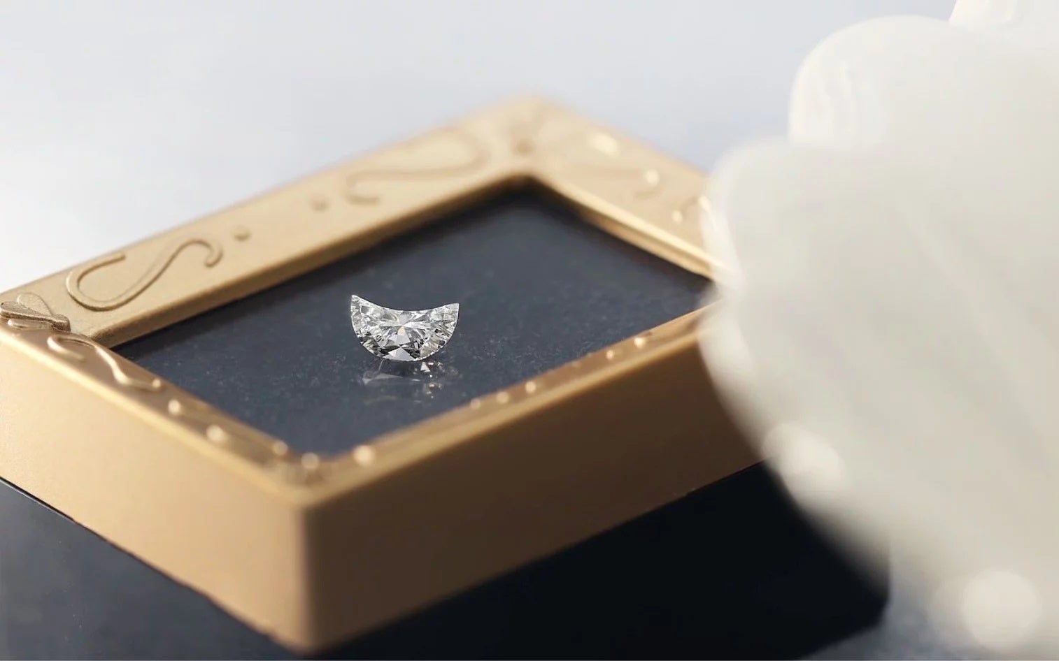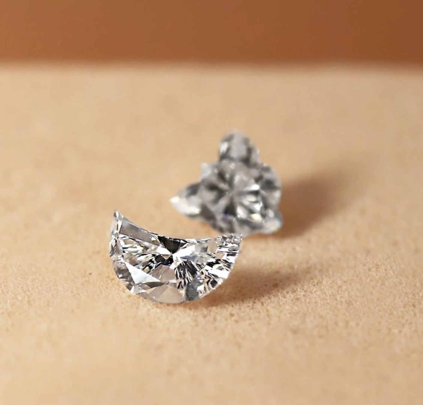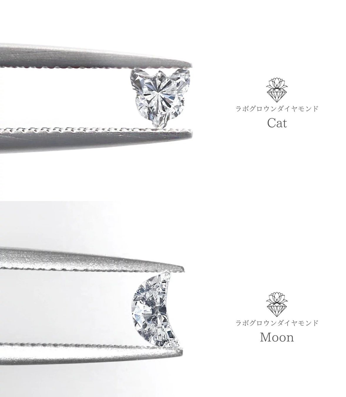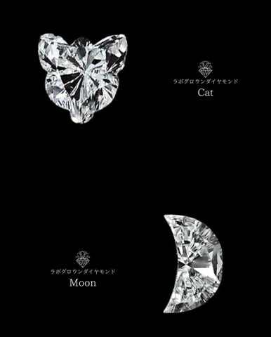 0.27カラット程度の三日月や猫のカットを作るには、0.5カラット以上の原石が必要ですが、ラボグロウンダイヤモンドなら可能です。