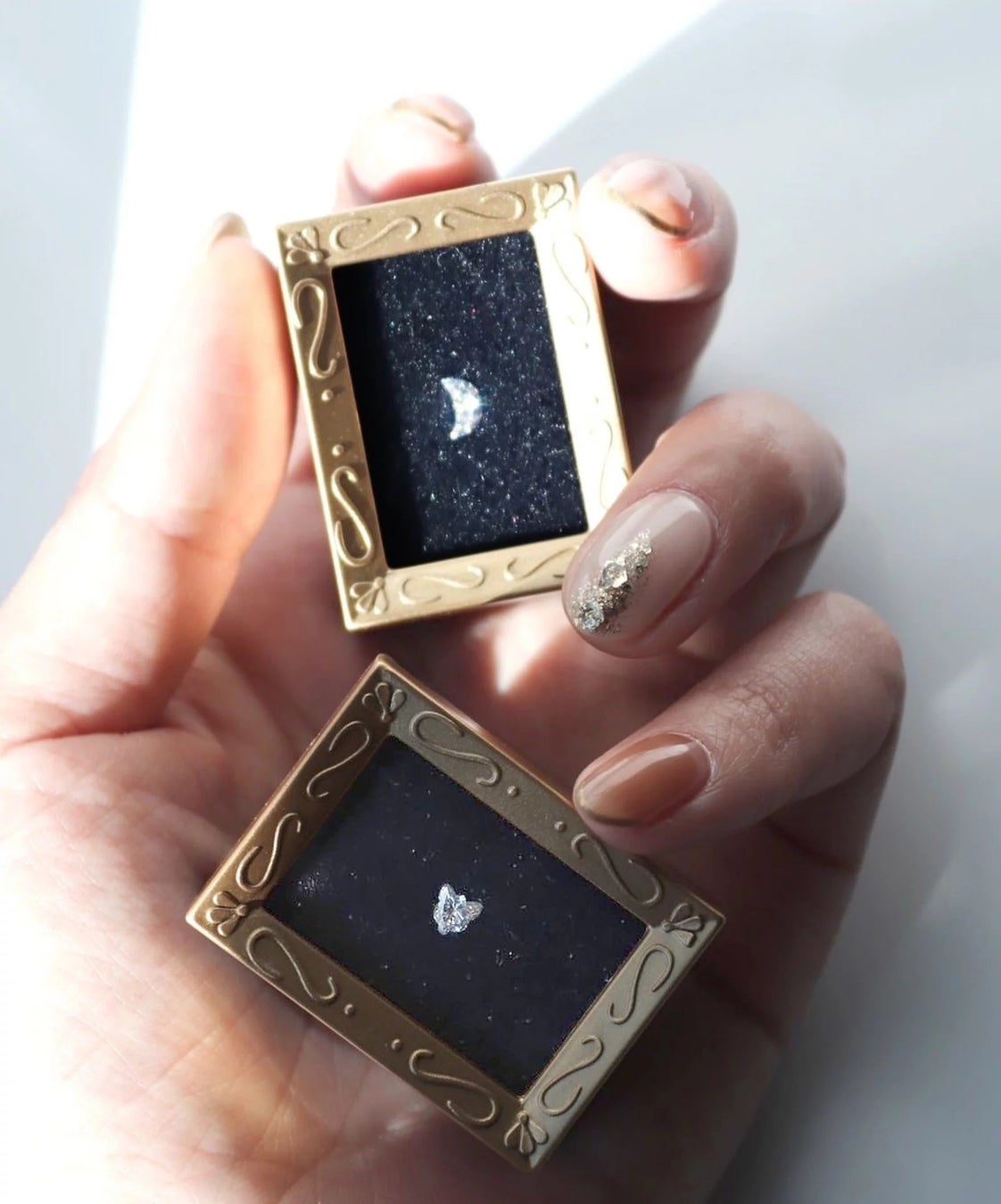 そのため、斬新なカットの加工にも挑戦でき、猫や月の形をダイヤモンドで表現しました。