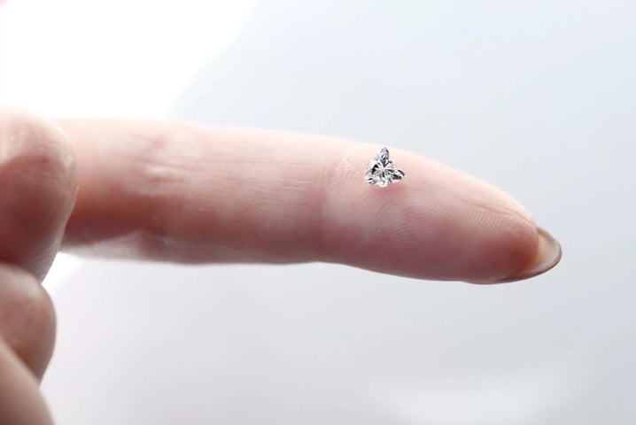 このダイヤモンドは研究室で生成されるため、価格は天然ダイヤモンドの10分の1程度です。