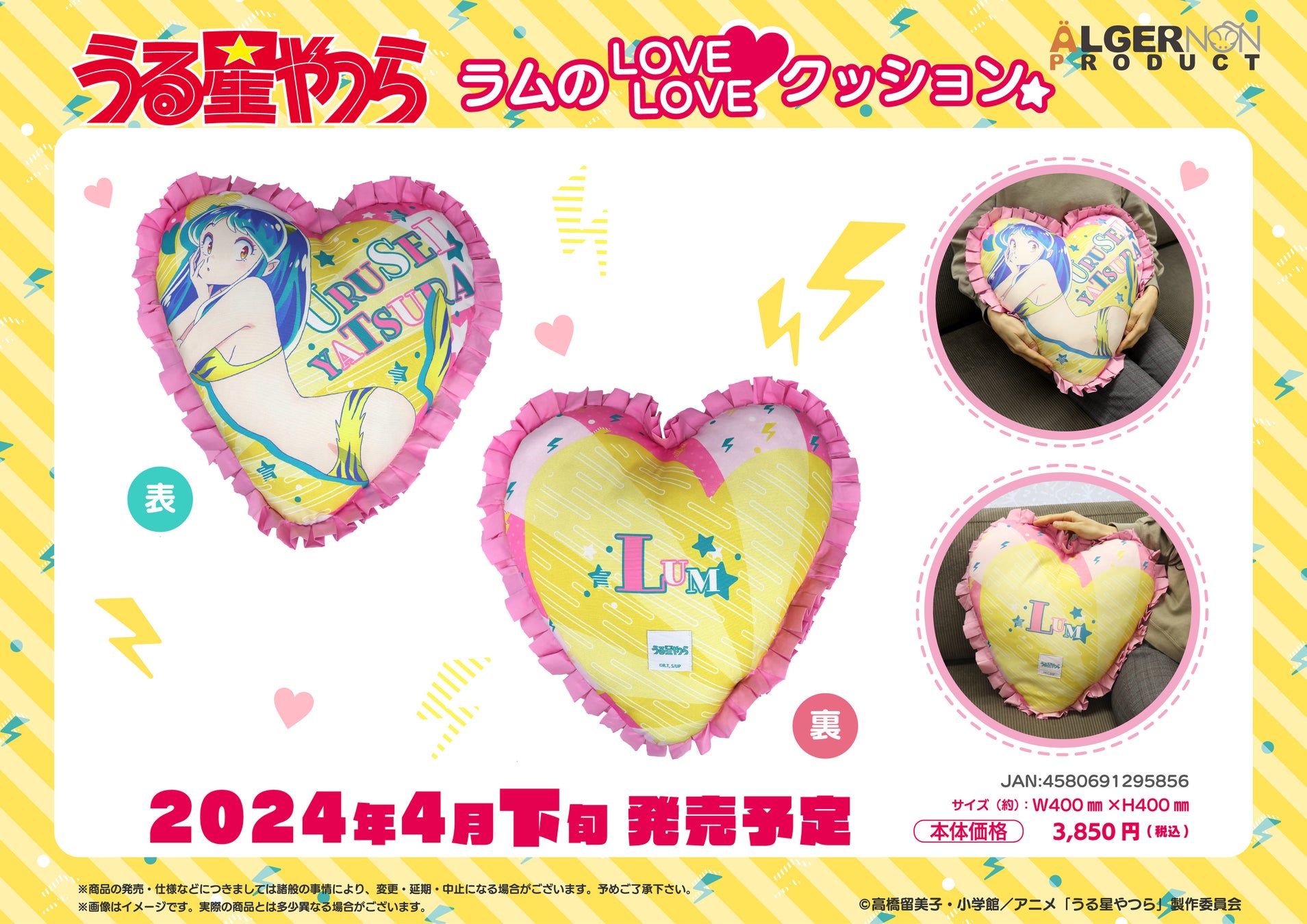 2024年4月下旬に発売予定の『うる星やつら』をイメージしたポップでかわいいデザインのクッション、ブランケット、ヘアバンドなどの日常使いアイテムが登場します。