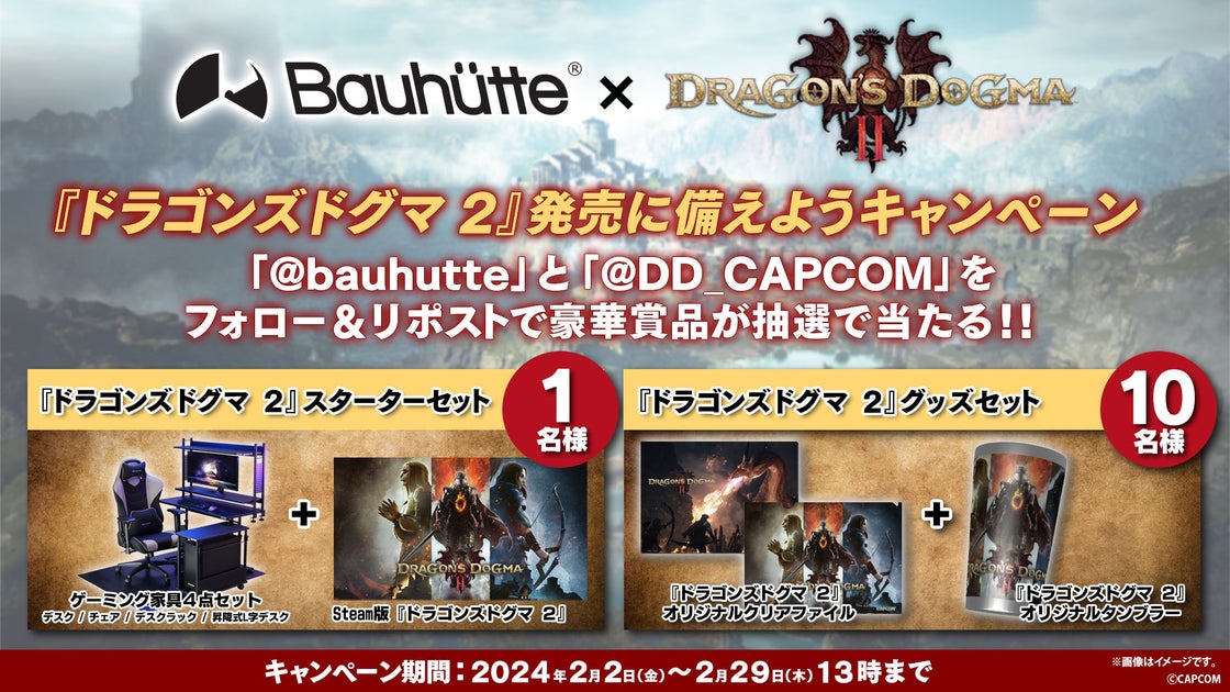 さらに、『ドラゴンズドグマ 2』とゲーミング家具メーカー「Bauhutte®」がコラボキャンペーンを開催します。