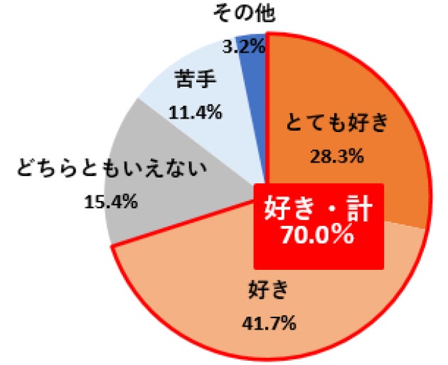 - 全体の70.0%がカニが好きであり、1位はタラバガニ(62.3%)、2位はズワイガニ(59.4%)、3位は毛ガニ(37.4%)