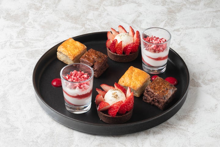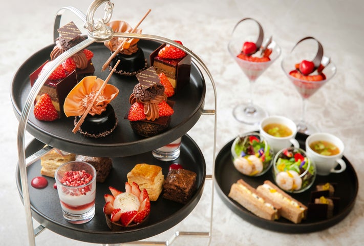 • 黒いチョコレートと赤いいちごを基調とした華やかなメニューが楽しめる