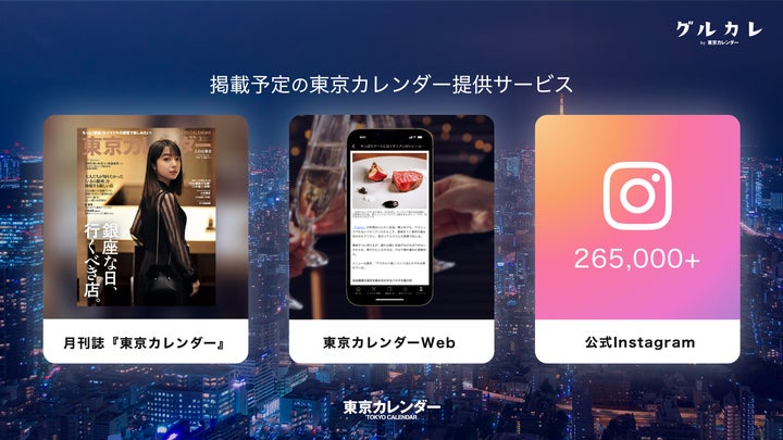 また、東京カレンダーは「グルカレ by 東京カレンダー」というサービスを提供しており、ユーザー投稿によるレストラン情報や取材に基づくレストラン紹介を通じて、魅力的な食体験を提供しています。