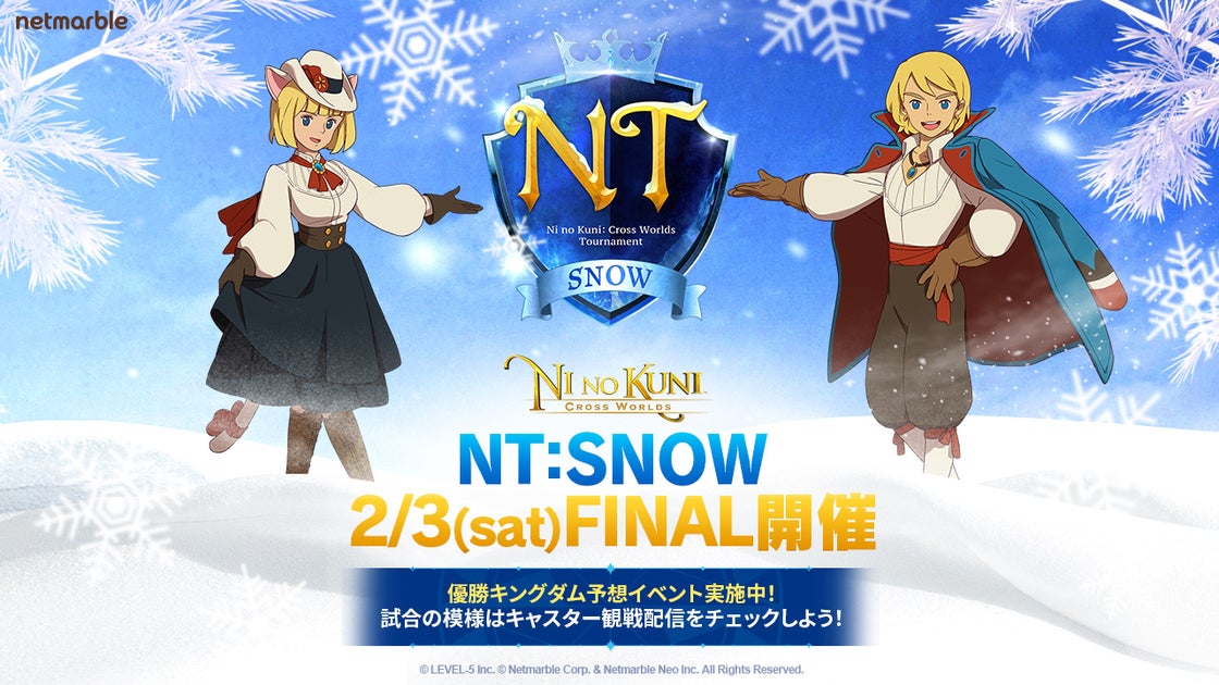 明日2月3日(土)に、レベルファイブとタッグを組んだファンタジーアートRPG『二ノ国:Cross Worlds』の公式大会「NT:SNOW」の優勝決定戦が開催されます。