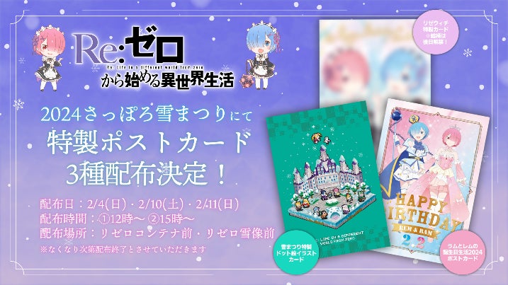 さらに、さっぽろ雪まつり2024でもラムとレムの雪像展示とポストカードの配布が行われます。