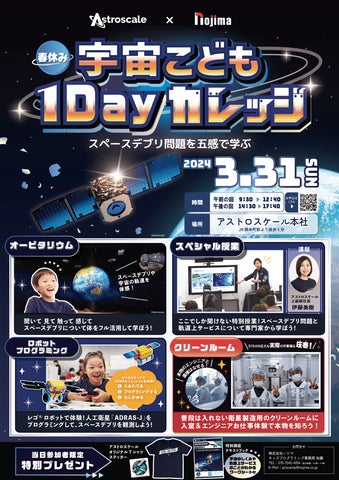 アストロスケールホールディングスの子会社であるアストロスケールとノジマは、小学生向けの体験学習イベント「春休み 宇宙こども1 Dayカレッジ」を開催します。