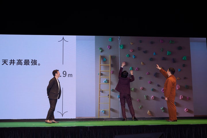 令和ロマンの髙比良くるまさんと松井ケムリさんも興味津々で、壁をボルダリング用にしたり、大きな絵を描いたりすることができると話しました。