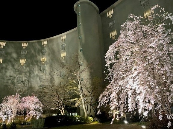 また、ホテルの中庭でも桜のライトアップが行われ、コーヒーや桜餅を楽しむことができます。