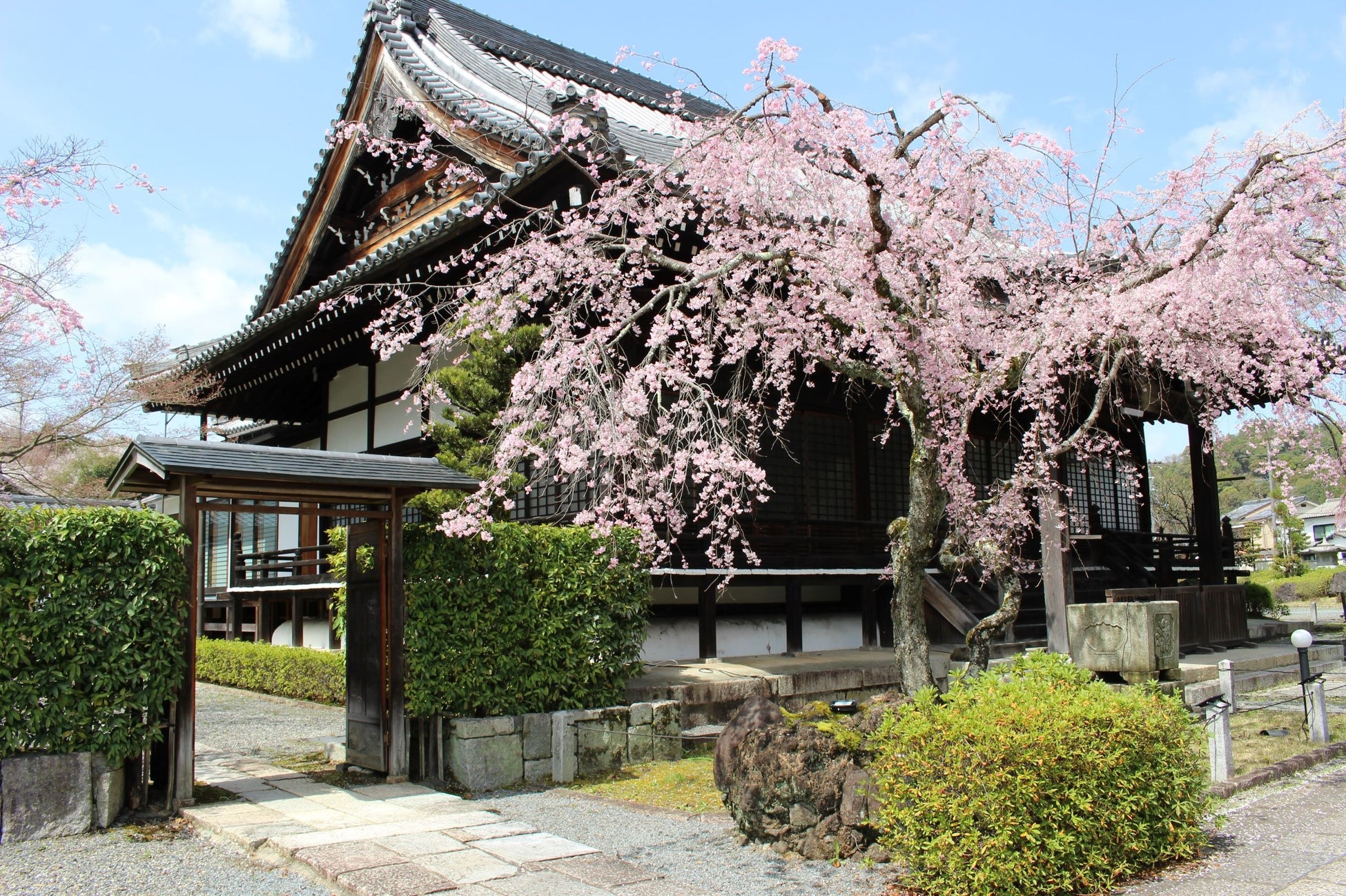 妙満寺の森には約200本の桜が植樹され、美しい花を咲かせます。