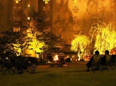 - ホテル中庭でも桜のライトアップが行われ、コーヒーや桜餅を楽しむことができる