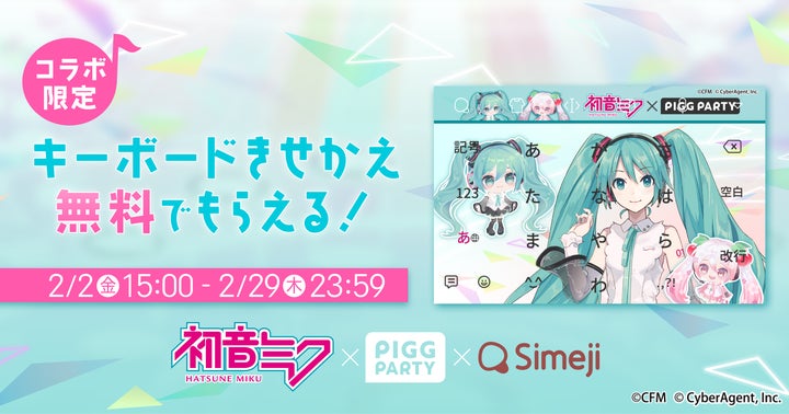「ピグパーティ×初音ミク×Simeji」のコラボが開催されます。