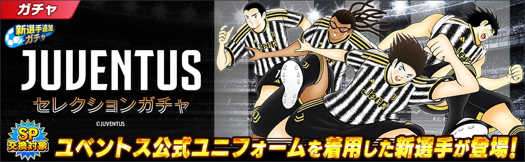 - JUVENTUSセレクションガチャ:JUVENTUS公式ユニフォーム着用の新選手登場。SSR確定枠あり。