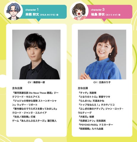 声優の日髙のり子さんと梅原裕一郎さんが参加し、他の8人のキャラクターは公募で決定されます。