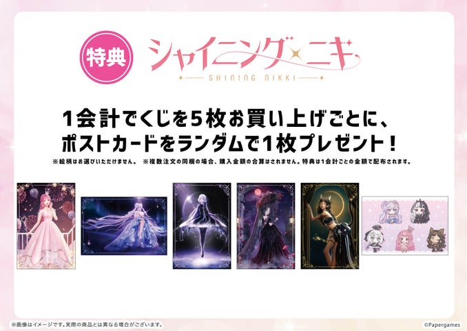 このくじでは、『シャイニングニキ』の公式イラストとミニキャライラストを使用した豪華景品が当たります。