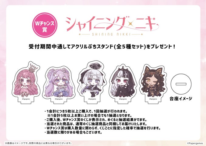 - Wチャンス賞としてアクリルぷちスタンドの全5種セットが当たる抽選も行われる