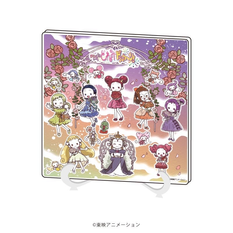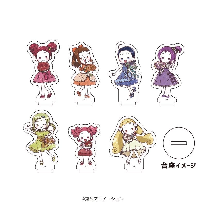 - グッズ、メモリーブロック、缶バッジ、アクリルキーホルダー、アクリルスタンド、キャンバスボード、アクリルジオラマプレート、折りたたみミラー、キャラクリアケース、キャラパス、アクリルぷちスタンド、アクリルアートボード、PETANTシール、スライド式小物ケース、ポストカード