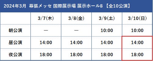 - 公演は3月10日に昼公演と夜公演の2回行われる