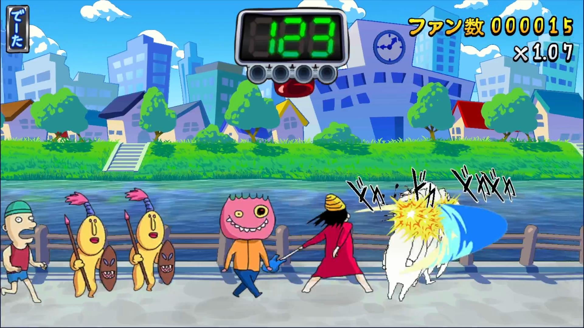 主人公のコウタローを操作して、街を歩くオーディエンスを叩いて爽快感を味わうことができます。
