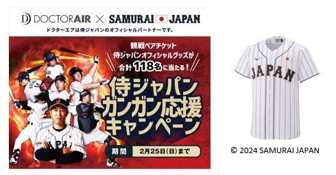 2024年3月6日(水)・7日(木)に行われる野球日本代表「侍ジャパン」の強化試合に向けて、ドクターエアがオフィシャルパートナーとなり、<侍ジャパンガンガン応援キャンペーン>を開催します。