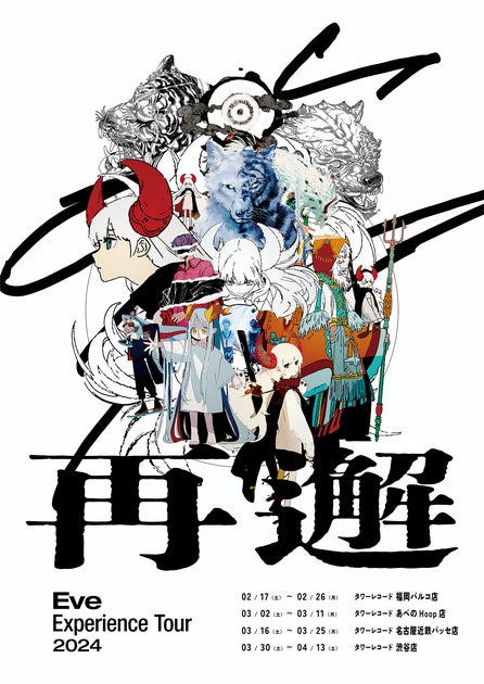 NTTドコモ・スタジオ&ライブは、2024年2月17日から4月13日までの期間、全国のタワーレコード4店舗でアーティスト「Eve」の2023年を再構築した体験の場『Eve Experience Tour 2024「再邂」』を開催します。