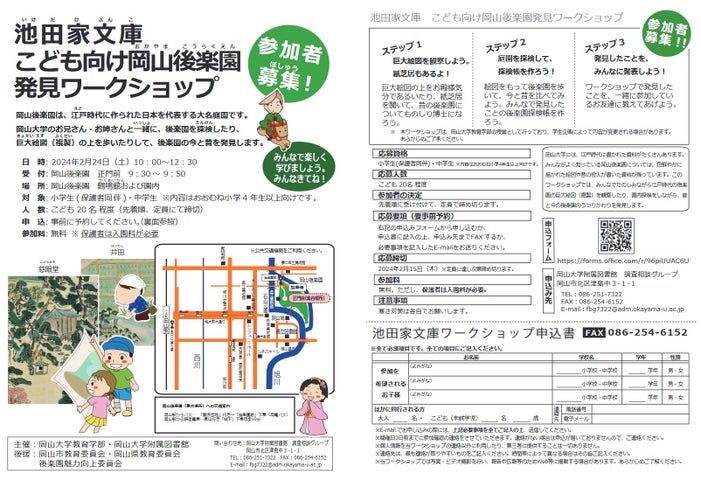 - 池田家文庫こども向け岡山後楽園発見ワークショップ、申込フォーム、FAX、メール