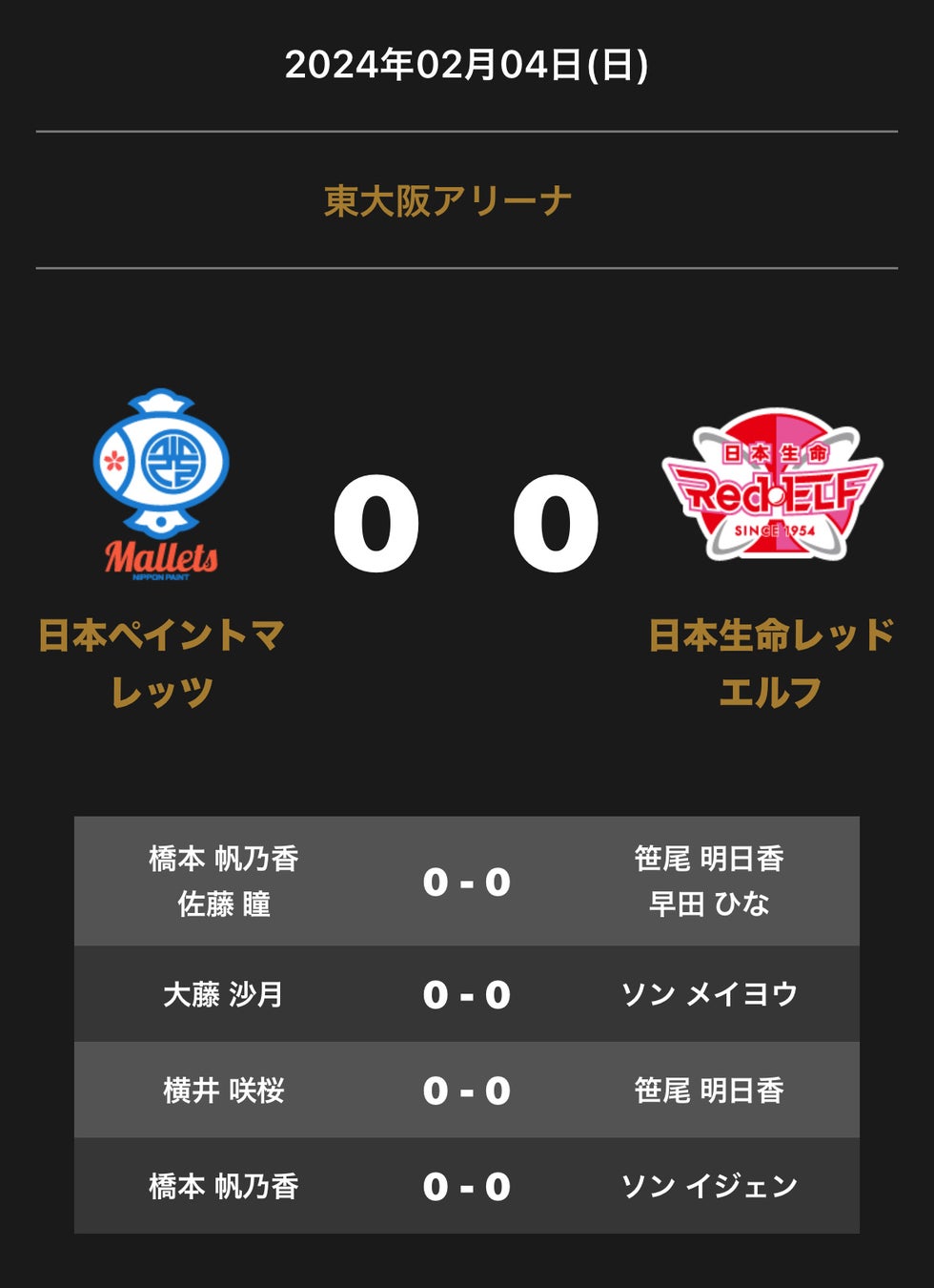 - ノジマTリーグ20232024シーズンの公式戦、2月4日の試合「日本ペイントマレッツ vs 日本生命レッドエルフ」の対戦オーダーが発表されました。